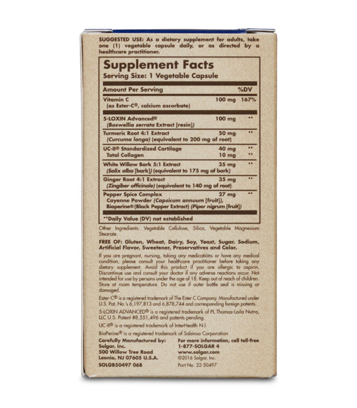 Solgar® No. 7 is the next generation alternative after glucosamine that increases mobility, flexibility and range of motion in sensitive joints.* In this breakthrough formulation, No. 7 brings together bio-active nutrients that work to create a fast-acting approach for occasional ‘tweaks’ and joint stresses brought on by exercise, sport or physical activity. With increased mobility and flexibility, Solgar® No. 7 can help you to pursue the activities you love and get back on track…fast.